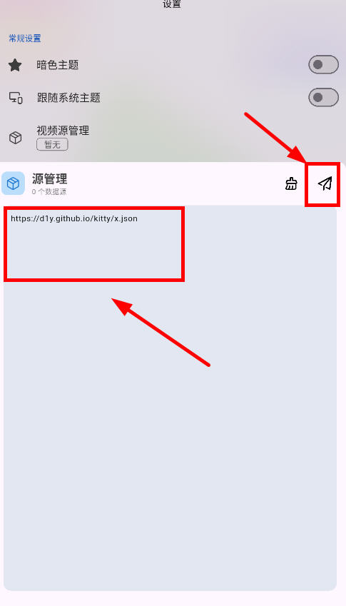 5、复制上面的源直接输入,点击右上角的小飞机按钮即可。