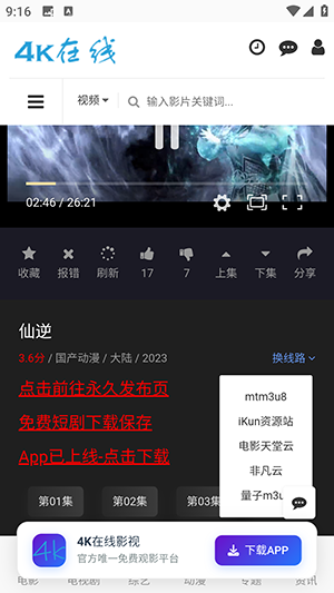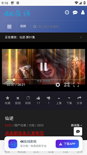 4K在线APP,一款专为安卓用户打造的免费观影神器。它提供4K超清画质与极速播放体验,无广告干扰,海量资源覆盖全品类,是您追剧的理想选择。
