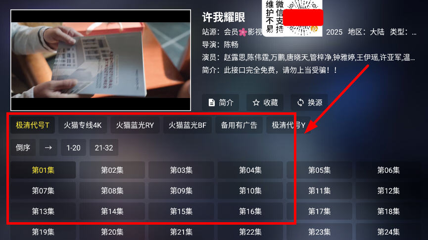 6、点开直接跳转播放,可以调整播放源和观看集数。