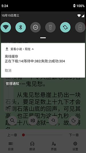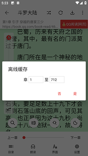 3、在阅读界面的上方点击下载功能,选择要下载的章节。