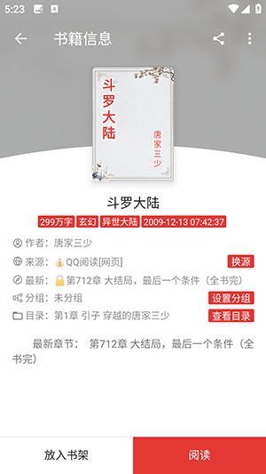 2、点击小说,在详情页面,加载不出来可以点击换源。