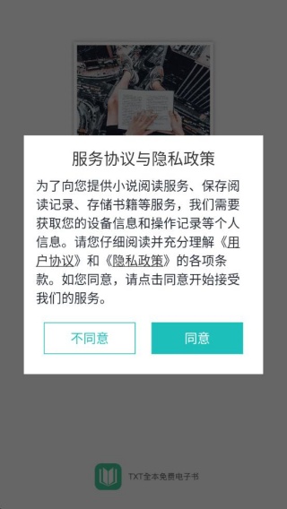 1、下载安装软件后进入,弹出服务协议与隐私政策,点击同意。