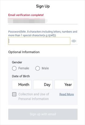 4、接着需要输入自己的电子邮箱,点击verify email address
