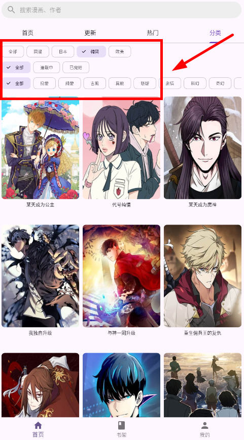 5、点击分类还可以自己设置韩漫、国漫、日漫等类型;