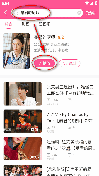 比如我们搜索暴君的厨师,并点击“播放”;
