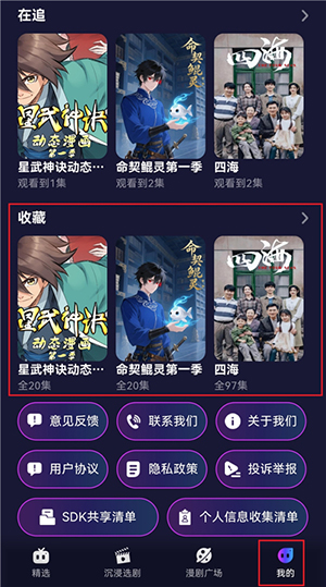 2、之后来到【我的】页面,就会出现【收藏】这一栏。