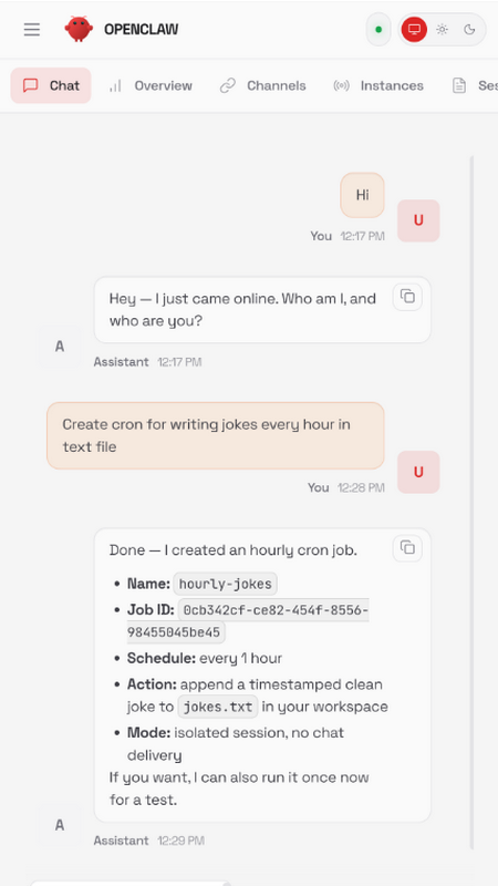 侧边栏集成完整控制界面——聊天、代理、会话、技能,所有功能一目了然,操作便捷高效。
