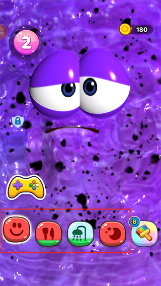 1、进入游戏,玩家要注意史莱姆的状态,给它洗澡、喂食等
